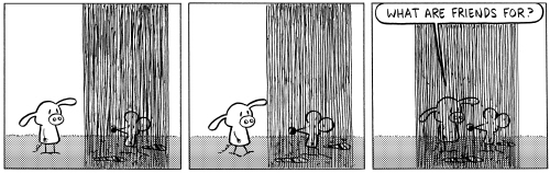 Sometimes, all you can do is stand in the rain with your friend. (Though my friends would have to stand out in the sun with 120 degree temps for me. My problems would definitely not be rain related!)